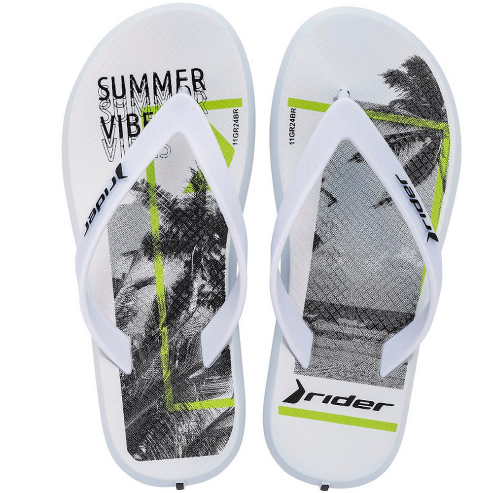 Las RIDER R1 ENERGY II KIDS son unas ojotas con una suela suave y texturizada para mayor estabilidad. La parte superior es de PVC, de gran resistencia y posee el logotipo de Rider resaltado a contra tono. La característica distintiva de este modelo es el estampado en la parte superior de la suela que le brinda color.