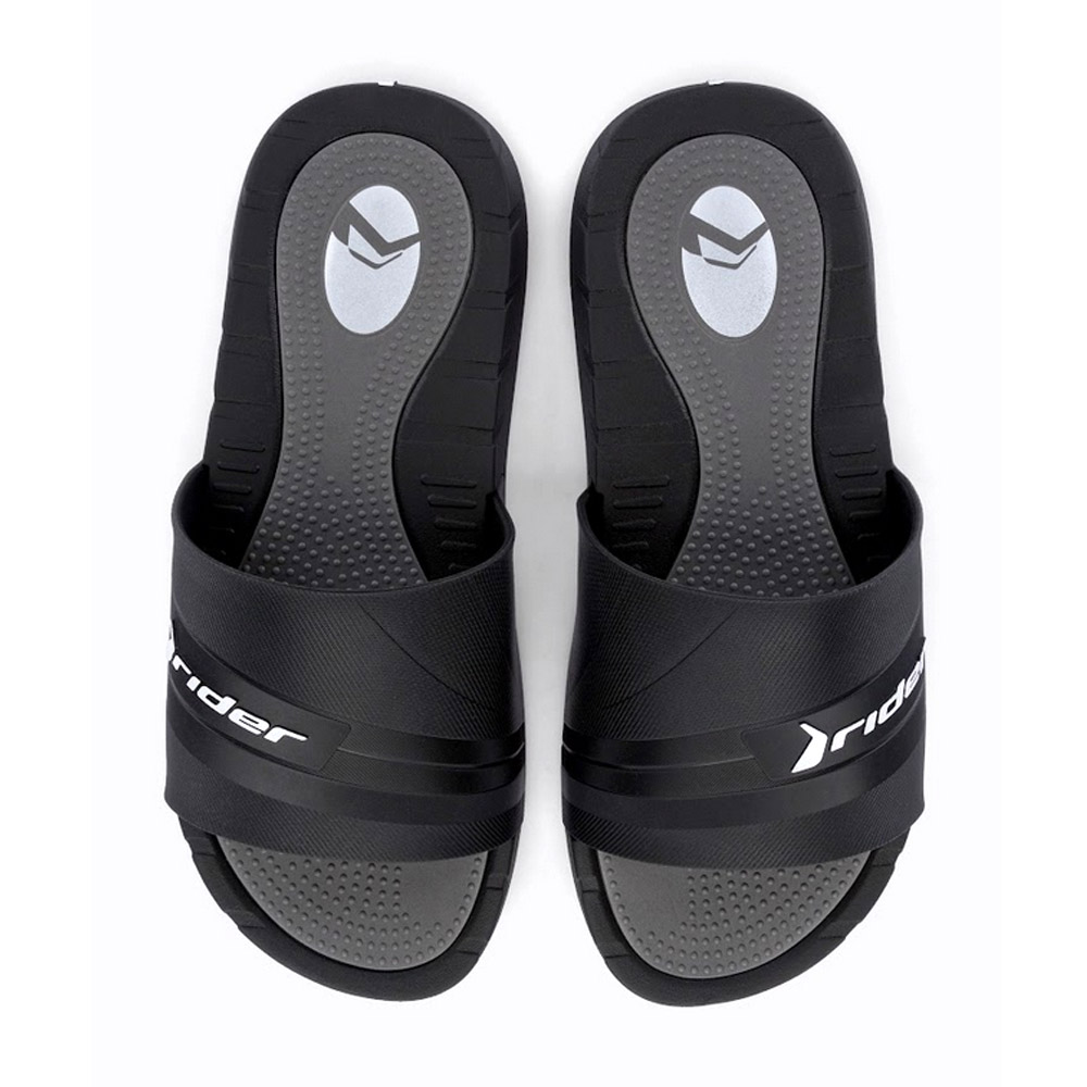 Rush Slide AD es un modelo que posee una fusión de acabados mate y brillante inspiradas en las zapatillas deportivas. Con texturas y biseles que enriquecen el diseño, en la parte superior donde se resalta el logotipo en contraste. La plantilla anatómica, con texturas que masajean, garantiza la comodidad, con detalles de color que aportan un toque distintivo a la sandalia.