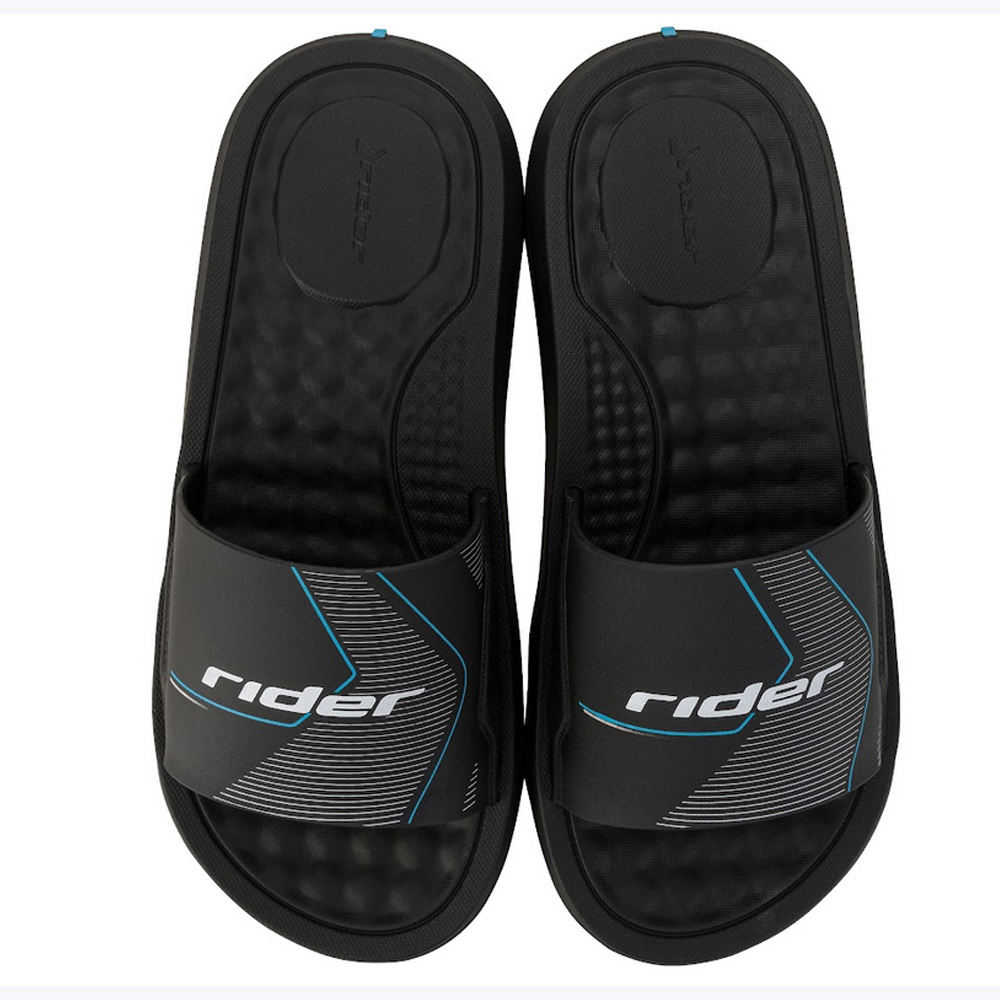 El modelo Rider Step Slide se inspiró en el estilo de vida deportivo. El producto cuenta con la famosa plantilla de masaje, que garantiza comodidad y estilo. En la zona del empeine posee el nombre de la marca estampado en color a contra tono del fondo.
