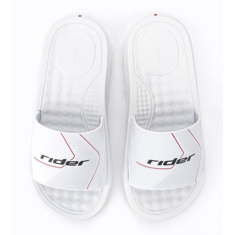 El modelo Rider Step Slide se inspiró en el estilo de vida deportivo. El producto cuenta con la famosa plantilla de masaje, que garantiza comodidad y estilo. En la zona del empeine posee el nombre de la marca estampado en color a contra tono del fondo.
